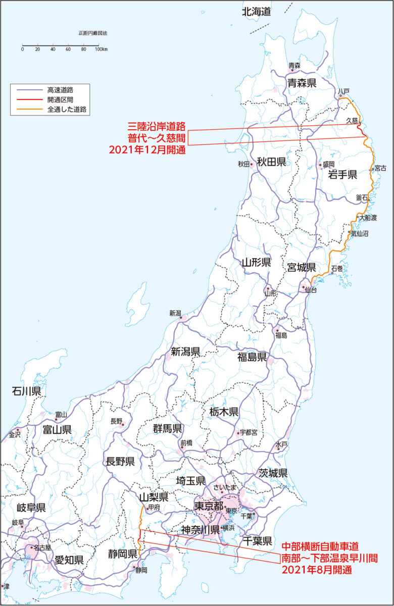 先だって、途切れていた高速道路がいくつか繋がって2021年度はネットワーク化がより進んだ…という話題を投稿しました。三陸沿岸道路が2021年末に全通した、とも書き記しています。さらにその後、播磨自動車道の延伸により山陽自動車道と中国自動車道とを繋いだ、というニュースまで飛び込んできています。